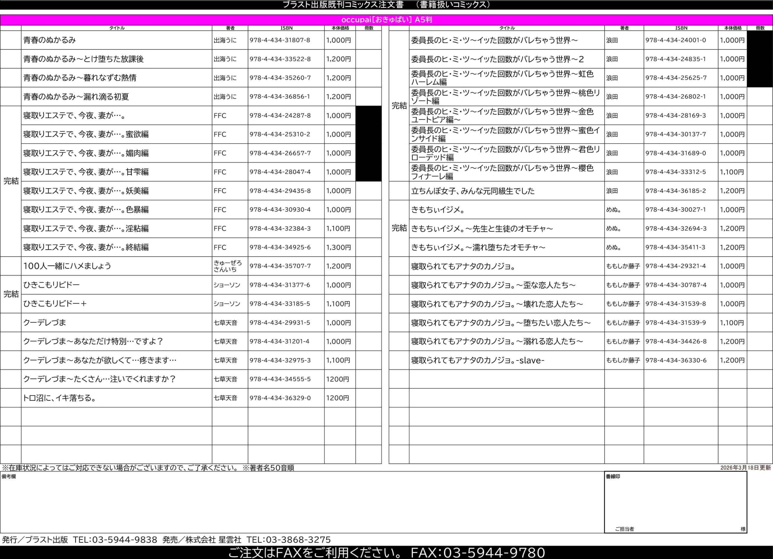 [ブラスト出版]FAX番号:03-5944-9780